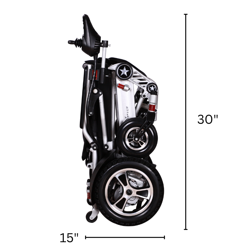 With its quick-fold design, effortlessly store this compact electric wheelchair in a car trunk, suitcase, or nearly anywhere else.